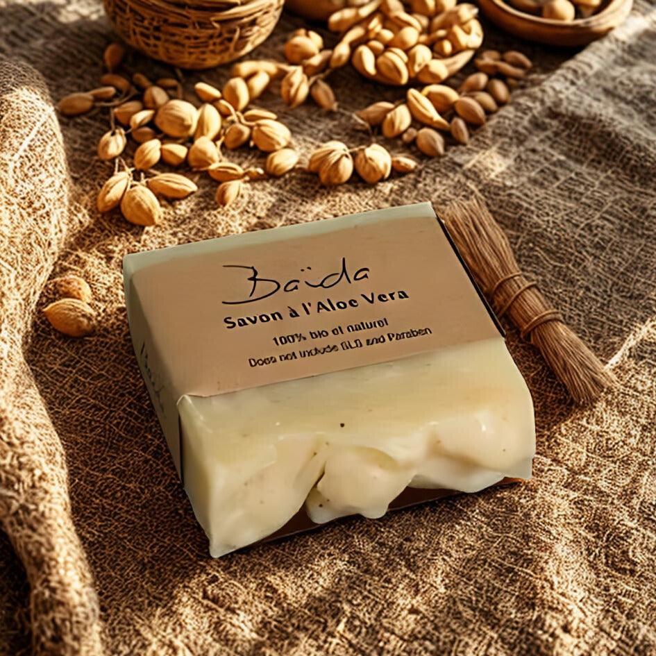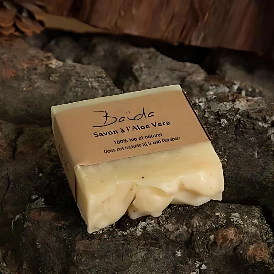 - Un allié naturel pour toutes les peaux en quête de soulagement, d’éclat et de protection. Notre savon à l’Aloe Vera offre une action complète : il apaise, répare, purifie et illumine. Sa formule artisanale, riche en huiles végétales et en extrait pur d’aloe vera, aide à combattre les imperfections, les coups de soleil, les démangeaisons, tout en révélant un teint plus jeune et plus net.